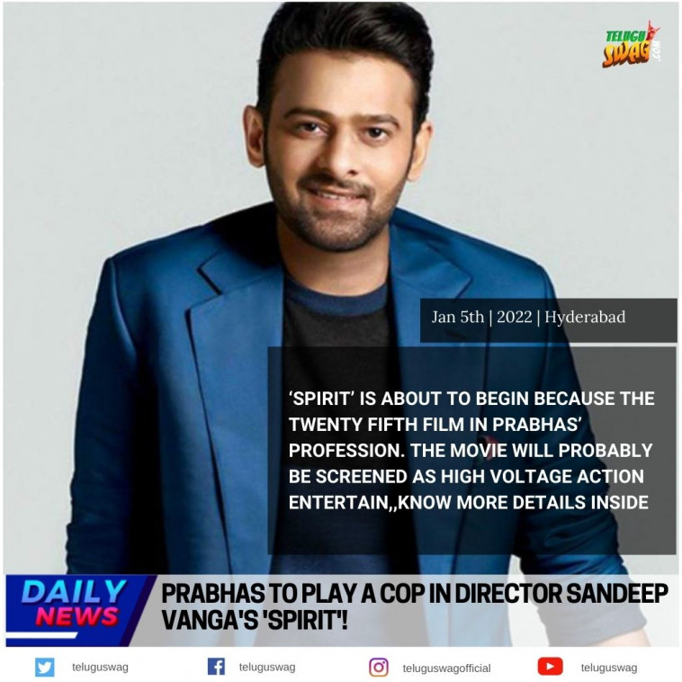 Prabhas to play a cop in director Sandeep Vanga’s ‘Spirit’!