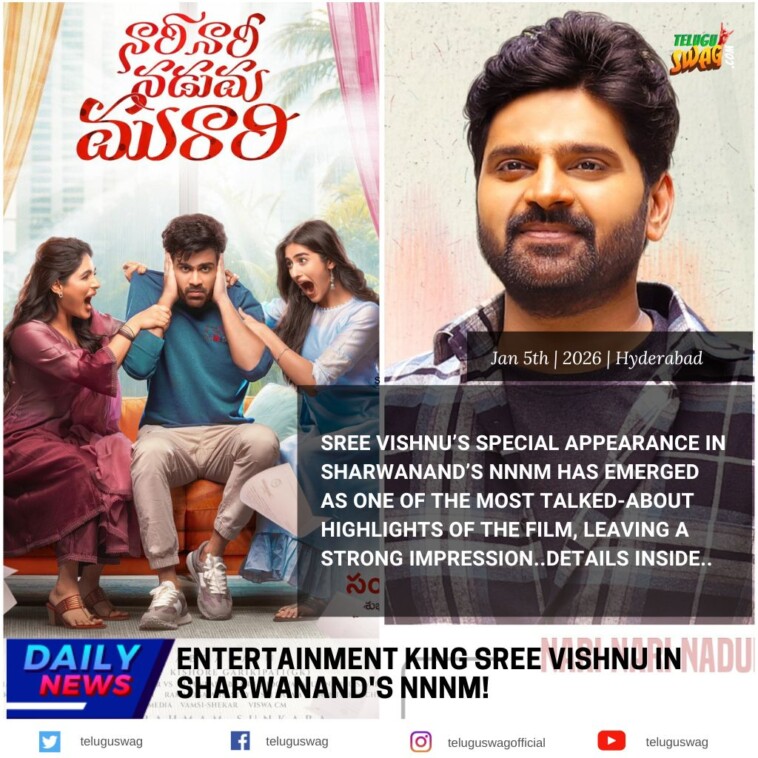 శర్వానంద్ హీరోగా రాబోతున్న ఫ్యామిలీ ఎంటర్టైనర్ చిత్రం ‘నారీ నారీ నడుమ మురారి’. ఈ సినిమా టీజర్ మరియు ఇతర ప్రమోషన్స్ కి మంచి స్పందన లభిస్తోంది. ఈ నేపథ్యంలో చిత్ర బృందం ఒక ముఖ్యమైన ప్రకటనను విడుదల చేసింది. ‘ఎంటర్టైన్మెంట్ కింగ్’ శ్రీవిష్ణు కూడా ఈ చిత్రంలో భాగమని చిత్రబృందం తాజాగా క్లారిటీ ఇచ్చింది. స్పెషల్ ఎనౌన్స్ మెంట్ అంటూ శ్రీవిష్ణు కార్ దిగుతూ ఉన్న గ్లింప్స్ ను విడుదల చేశారు. మొత్తానికి శ్రీవిష్ణుతో ఈ [...]