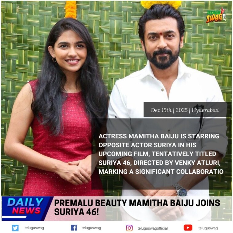 సూర్య, టాలీవుడ్ దర్శకుడు వెంకీ అట్లూరి కాంబినేషన్లో వస్తున్న సినిమా షూటింగ్ పూర్తయినట్లు తెలుస్తోంది. సూర్య 46వ చిత్రంగా తెరకెక్కుతున్న ఈ సినిమాను ఈ ఏడాది మే నెలలో హైదరాబాద్లో పూజా కార్యక్రమాలతో ఘనంగా ప్రారంభించారు. ప్రముఖ దర్శకుడు త్రివిక్రమ్ శ్రీనివాస్ క్లాప్ కొట్టి సినిమాను లాంఛనంగా ప్రారంభించారు. పూర్తిస్థాయి ఫ్యామిలీ ఎంటర్టైనర్గా ఈ చిత్రాన్ని రూపొందిస్తున్నట్లు సమాచారం.. మలయాళంలో ‘ప్రేమలు’ చిత్రంతో భారీ విజయాన్ని అందుకున్న మమితా బైజు ఈ సినిమాలో హీరోయిన్గా నటిస్తున్నారు. జాతీయ [...]