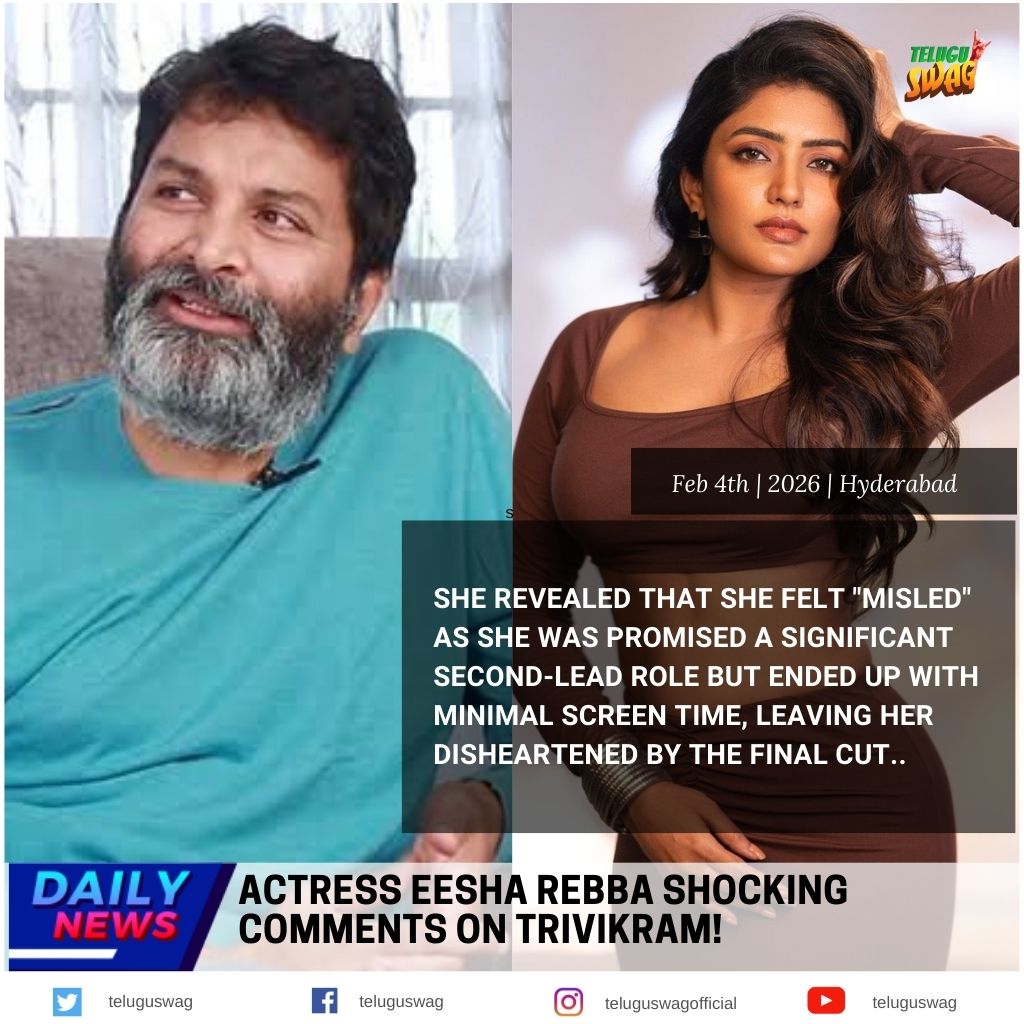 త్రివిక్రమ్ శ్రీనివాస్ పై హీరోయిన్ ఈషా రెబ్బ సంచలన వ్యాఖ్యలు చేశారు. త్రివిక్రమ్ తనను మోసం చేశాడని ఆమె అన్నారు. ఆయన దర్శకత్వం వహించిన ‘అరవింద సమేత..’ సినిమా గురించి మాట్లాడుతూ ఆమె ఈ వ్యాఖ్యలు చేశారు. ఆ చిత్రంలో ఈషా క్యారెక్టర్ రోల్ లో నటించింది. ఆ సమయంలో తనకు ఎన్నో సందేహాలు ఉన్నాయని..ఒక కమర్షియల్ సినమాలో సైడ్ క్యారెక్టర్స్ చేస్తే భవిష్యత్తులో కూడా తనకు అలాంటి పాత్రలే వస్తాయేమోనని భయపడ్డానని చెప్పారు..