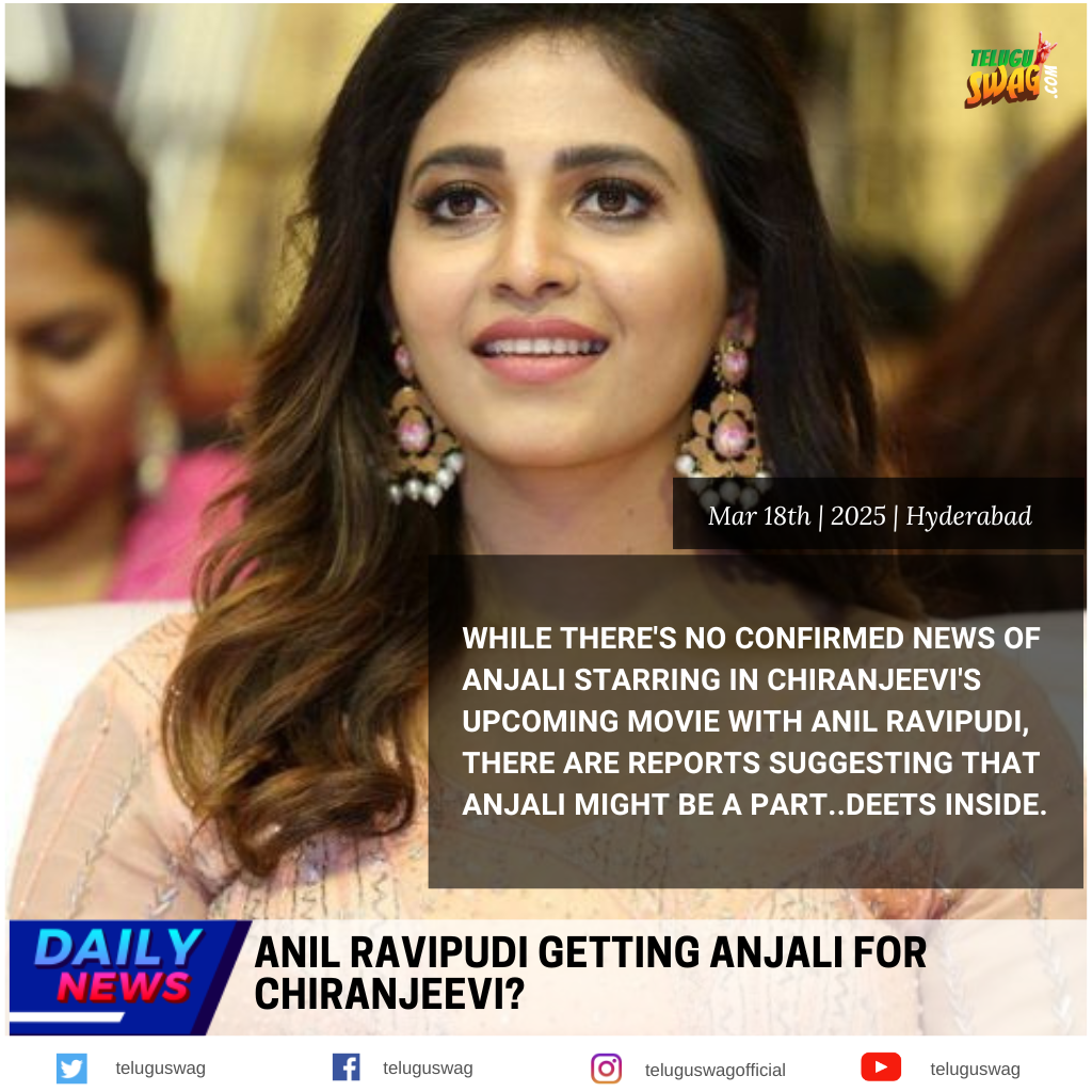 లేటెస్ట్ అప్డేట్ ప్రకారం ఇప్పుడు అంజలి పేరు తెరపైకి వచ్చింది. చిరు పక్కన అంజలి అయితే బాగుంటుంది అన్న సెకండ్ ఆలోచన కూడా చేస్తున్నారట. అంజలి ఇప్పటికే వెంకటేష్, బాలయ్యలతో నటించింది. రీసెంట్ గా రామ్ చరణ్ గేమ్ చేంజర్ మూవీలో కూడా నటించి మంచి ప్రశంసలు అందుకుంది. అంజలి అయితే అనిల్ కథకి సరిగ్గా సరిపోతుంది అని భావిస్తున్నాడట. సంక్రాంతికి వస్తున్నాం సినిమాలో ఐశ్వర్య రాజేష్, మీనాక్షి లని తీసుకున్నప్పుడు అంతా సందేహ పడినా సినిమా హిట్ లో వారే కీలకంగా నిలిచారు. ఇప్పడు కూడా అంజలి పాత్ర అలాగే ఉంటుంది అని టాక్..!!