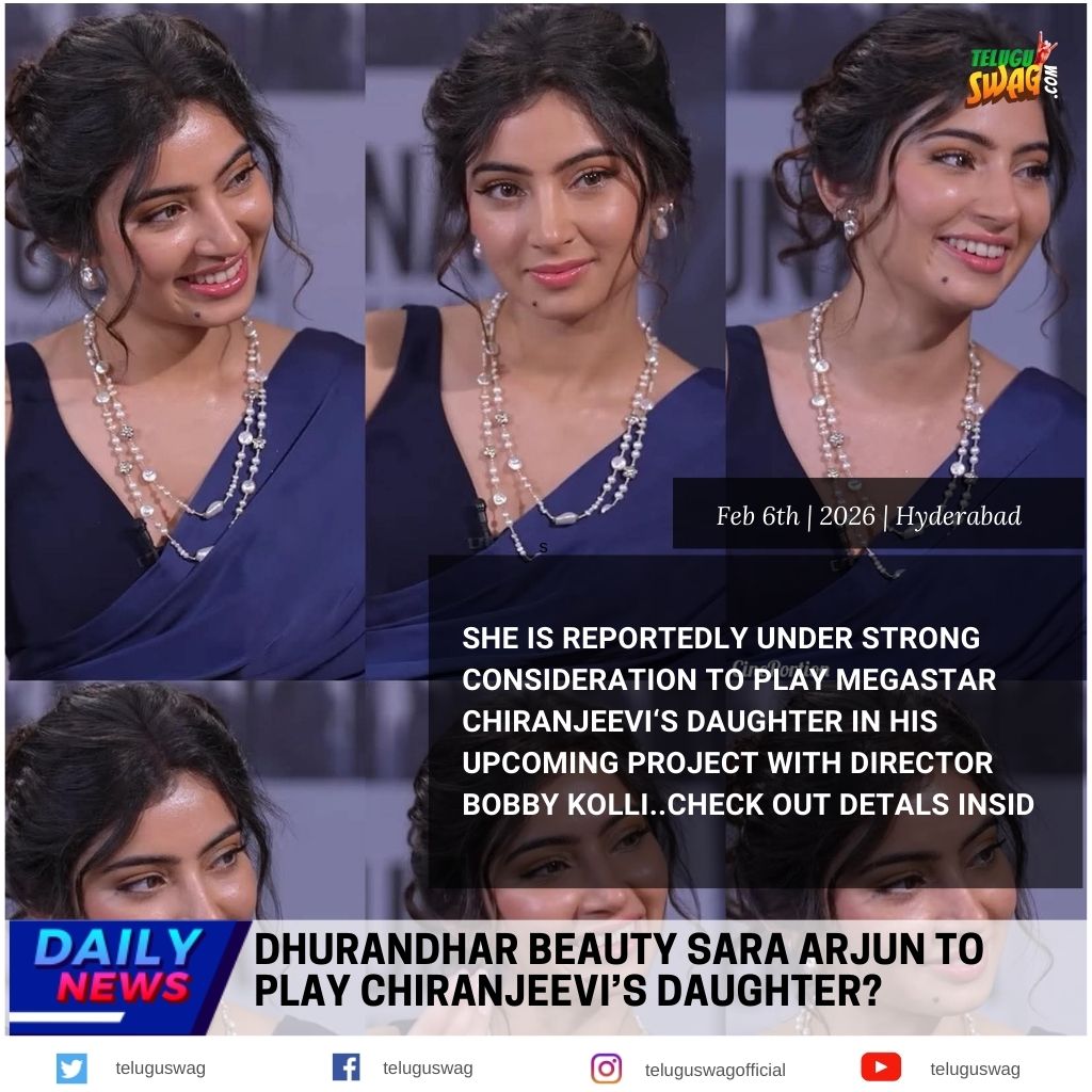 ఈ చిత్రంలో కథను మలుపు తిప్పే అత్యంత కీలకమైన చిరంజీవి కూతురి పాత్ర కోసం ఒక టాలెంటెడ్ నటిని ఎంపిక చేసినట్లు తెలుస్తోంది. ఈ ఎమోషనల్ పాత్ర కోసం చిత్ర బృందం చాలా మందిని పరిశీలించినా, చివరకు సారా అర్జున్ వైపు మొగ్గు చూపారు. ‘పొన్నియిన్ సెల్వన్’లో తన నటనతో ఆకట్టుకున్న సారా, ఇటీవలే హిందీ చిత్రం ‘ధురంధర్’తో బ్లాక్ బస్టర్ హిట్ అందుకుంది. ఆమె స్క్రీన్ ప్రెజెన్స్, నటన ఈ పాత్రకు ప్రాణం పోస్తాయని దర్శకుడు బాబీ నమ్ముతున్నారు..!!