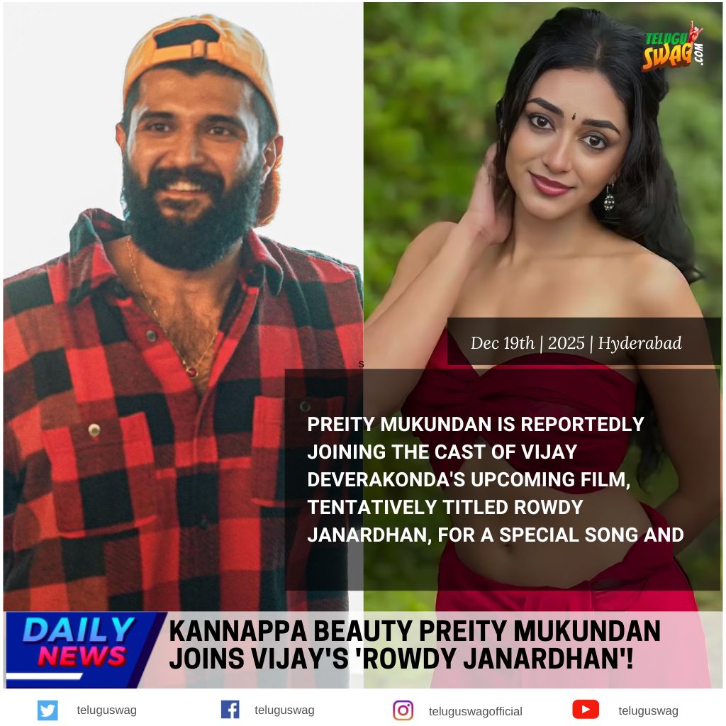 విజయ్ హీరోగా దర్శకుడు రవి కిరణ్ కోలా తెరకెక్కించనున్న సినిమా ‘రౌడీ జనార్దన’. ఐతే, తాజాగా ఈ సినిమా గురించి వినిపిస్తున్న అప్ డేట్ ప్రకారం ఈ సినిమాలో ఓ స్పెషల్ సాంగ్ ను డిజైన్ చేశారట. ఈ సాంగ్ కోసం కన్నప్ప ఫేమ్ ‘ప్రీతి ముకుందన్’ ని ఎంపిక చేసినట్లు తెలుస్తోంది. ఆమె ఈ సాంగ్ తో పాటు ఓ చిన్న పాత్రలో కూడా కనిపిస్తోందట. మంచు విష్ణు ‘కన్నప్ప’ చిత్రంతో తెలుగులోకి ఎంట్రీ ఇచ్చింది ప్రీతి ముకుందన్.