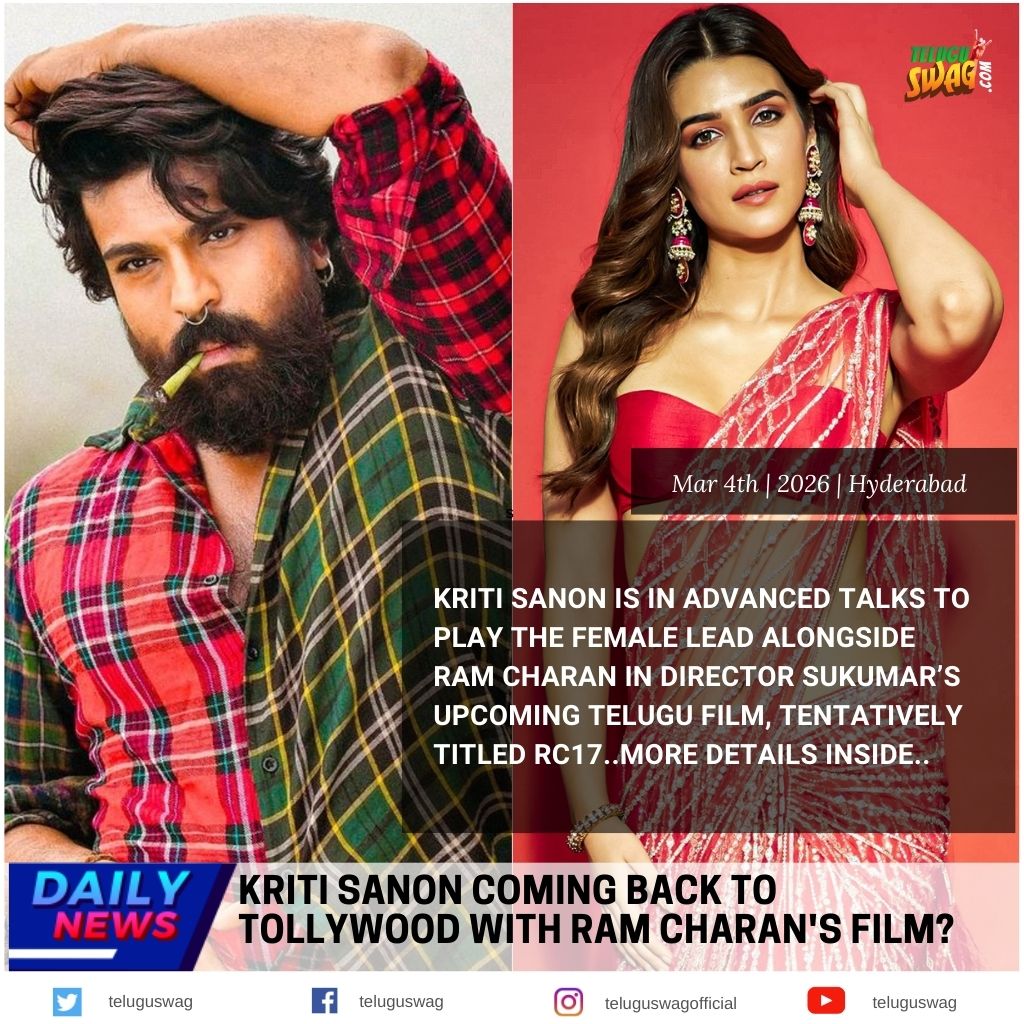 దర్శకుడు సుకుమార్, గ్లోబల్ స్టార్ రామ్ చరణ్ కాంబినేషన్లో రాబోతున్న భారీ ప్రాజెక్ట్ (RC17) గురించి ఒక ఆసక్తికరమైన వార్త ఫిలిం నగర్ సర్కిల్స్లో చక్కర్లు కొడుతోంది. ఈ సినిమాలో హీరోయిన్గా బాలీవుడ్ భామ కృతి సనన్ను ఎంపిక చేసినట్లు సమాచారం..కృతి సనన్ తెలుగు చిత్ర పరిశ్రమకు కొత్తేమీ కాదు. గతంలో సుకుమార్ దర్శకత్వంలో మహేష్ బాబు హీరోగా వచ్చిన ‘1 నేనొక్కడినే’ సినిమాతోనే ఆమె వెండితెరకు పరిచయమయ్యారు. ఆ తర్వాత నాగచైతన్యతో ‘దోచేయ్’ సినిమాలో నటించారు. అయితే ఈ రెండు సినిమాలు బాక్సాఫీస్ వద్ద ఆశించిన విజయం సాధించకపోవడంతో ఆమె బాలీవుడ్కు మకాం మార్చారు..అక్కడే వరుస సినిమాల్లో నటిస్తుంది. మొన్నామధ్య ప్రభాస్ తో కలిసి ఆదిపురుష్ అనే సినిమా చేసింది. రామాయణం నేపథ్యంలో వచ్చిన ఈ సినిమా డబుల్ డిజాస్టర్ అయ్యింది..!!