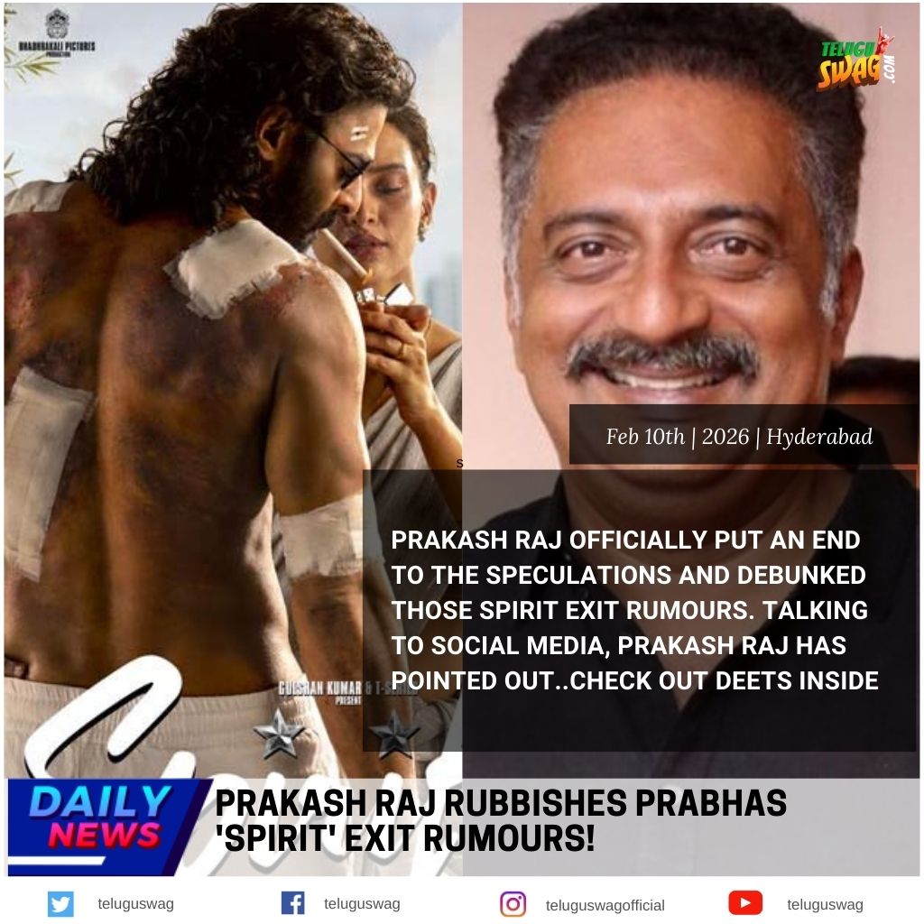 రెబల్ స్టార్ ప్రభాస్ హీరోగా, సందీప్ రెడ్డి వంగా దర్శకత్వంలో ప్రతిష్ఠాత్మకంగా తెరకెక్కుతున్న ‘స్పిరిట్’ సినిమా నుంచి సీనియర్ నటుడు ప్రకాశ్ రాజ్ను తొలగించారంటూ వచ్చిన వార్తలపై ఆయన స్పందించారు. సోషల్ మీడియాలో జరుగుతున్న ఈ ప్రచారాన్ని ఆయన తీవ్రంగా ఖండించారు. ఇదంతా విషపూరితమైన ఫేక్ న్యూస్ అని కొట్టిపారేశారు.