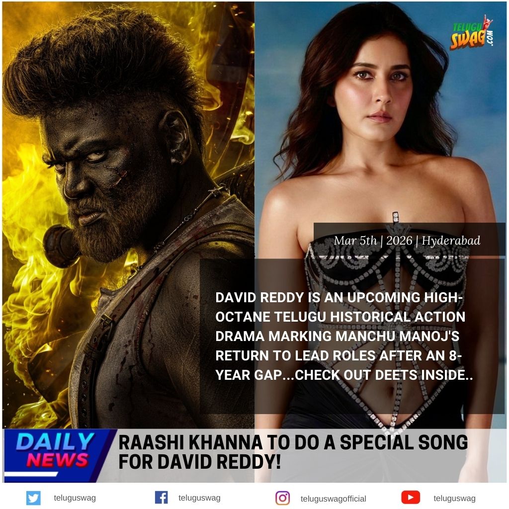 మంచు మనోజ్‌ హీరోగా తెరకెక్కుతున్న పీరియాడికల్‌ యాక్షన్‌ మూవీ ‘డేవిడ్‌ రెడ్డి’. హనుమరెడ్డి యక్కంటి దర్శకత్వంలో రూపొందుతున్న ఈ సినిమాలో ఓ ఐటెం సాంగ్ అనుకుంటున్నారు. ఈ సాంగ్ లో మనోజ్ తో కలిసి డాన్స్ చేయడానికి రాశి ఖన్నాను తీసుకోబోతున్నారని తెలుస్తోంది. మరి ఇప్పుడు మనోజ్ సరసన రాశి ఖన్నా ఎలాంటి స్పెషల్ సాంగ్ చేస్తోందో చూడాలి..