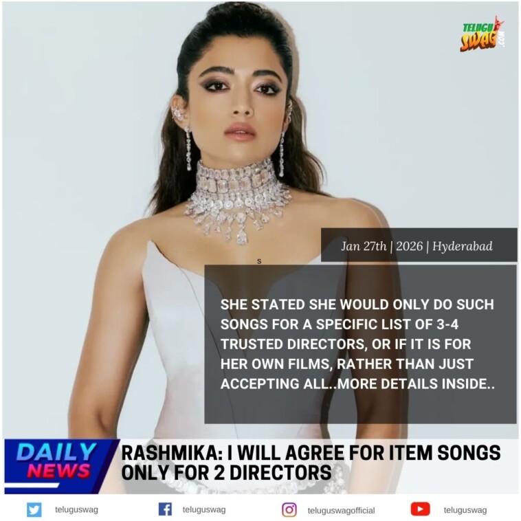 రష్మిక డ్యాన్స్ స్కిల్స్తో కుర్రకారును ఆకట్టుకుంటుండటంతో, దర్శక నిర్మాతలు ఆమెను స్పెషల్ సాంగ్స్ కోసం సంప్రదిస్తున్నారు. రష్మికను ఐటెం సాంగ్స్ లోకి తీసుకుంటే గ్లామర్, పెర్ఫార్మెన్స్ రెండూ ఒకేసారి సెట్ అవుతాయని మేకర్స్ ప్లాన్ చేసుకుంటున్నారు. కానీ, రష్మిక ఇటీవల తన నిర్ణయాన్ని స్పష్టంగా చెప్పి, ఇండస్ట్రీకి షాక్ ఇచ్చింది. తాను స్పెషల్ సాంగ్స్ చేసేది కేవలం ఇద్దరు ఫేవరెట్ డైరెక్టర్ల సినిమాల్లో మాత్రమే అని, మిగతా ఎవరికీ అందుబాటులో ఉండబోనని స్పష్టం చేసింది.. "ఇతర చిత్రాల్లో [...] -