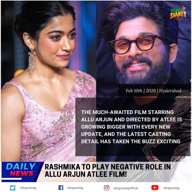 పుష్ప' ఫ్రాంచైజీలో ఐకాన్ స్టార్ అల్లు అర్జున్, నేషనల్ క్రష్ రష్మిక హిట్ జోడీగా తమ నటనతో అందరినీ మెప్పించారు. ఇప్పుడు మరోసారి వీరిద్దరూ కలిసి నటించనున్నట్లు తెలుస్తోంది. అది కూడా అట్లీ పాన్ వరల్డ్ రేంజ్ సైన్స్ ఫిక్షన్ మూవీలో. గత రోల్స్ కంటే డిఫరెంట్గా అట్లీ అల్లు అర్జున్ మూవీలో రష్మిక నెగిటివ్ రోల్ చేయనున్నట్లు టాక్ వినిపిస్తోంది. గత కొన్ని రోజులుగా ఈ ప్రచారం సాగుతున్నా..ఇప్పుడు ఆ పాత్ర షూటింగ్ కోసం నేషనల్ [...]