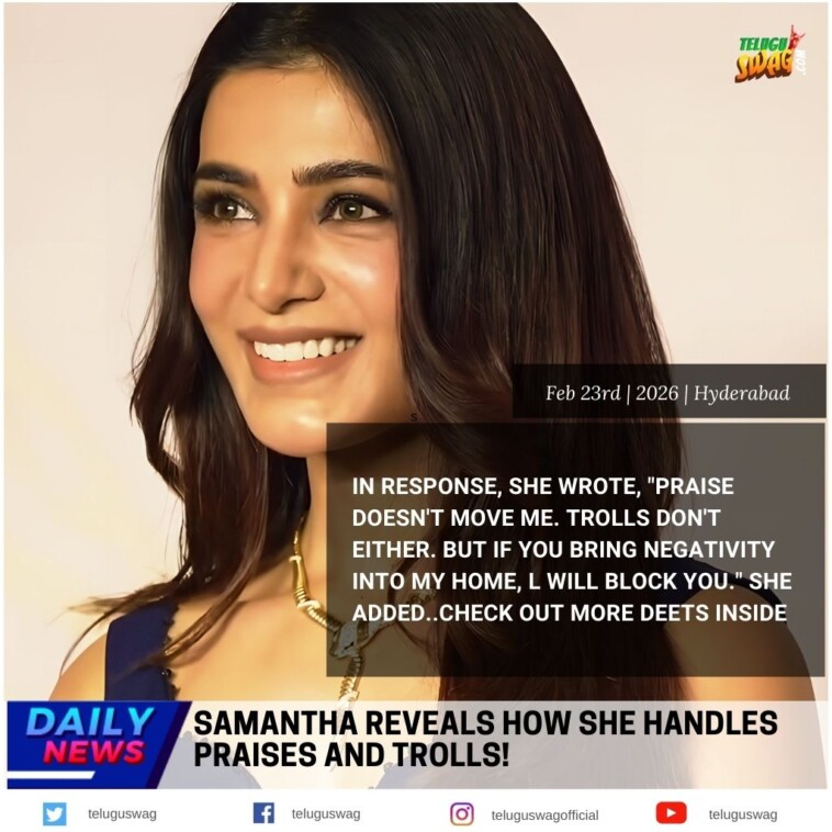 సోషల్ మీడియాలో తన వ్యక్తిగత జీవితం, ఆరోగ్యంపై వచ్చే నెగెటివ్ కామెంట్లు, ట్రోల్స్ను ఎలా ఎదుర్కొంటారని అడిగిన ప్రశ్నకు సమంత స్పందిస్తూ, ప్రశంసలు తనను పొంగిపోయేలా చేయవని, అలాగే విమర్శలు తనను కుంగదీయలేవని స్పష్టం చేశారు. అయితే తన డిజిటల్ స్పేస్లోకి ఎవరైనా కావాలని నెగిటివిటీని తీసుకొస్తే మాత్రం సహించేది లేదని హెచ్చరించారు.. తన ఇంటిని ఎంత శుభ్రంగా ఉంచుకుంటానో, తన సోషల్ మీడియా పేజీని కూడా అలాగే ఉంచుకోవాలని భావిస్తానని ఆమె పేర్కొన్నారు. ఎవరినైనా బ్లాక్ [...] -