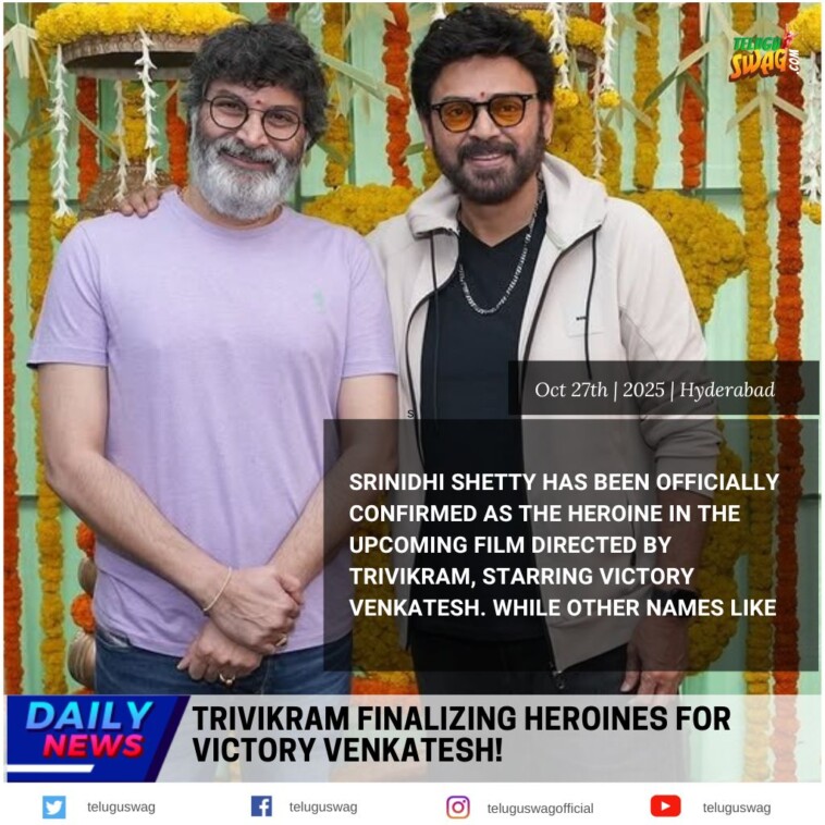 వెంకటేశ్ హీరోగా స్టార్ డైరెక్టర్ త్రివిక్రమ్ తెరకెక్కిస్తున్న చిత్రం పై భారీ అంచనాలు ఉన్నాయి. ఐతే, ఈ సినిమాలో హీరోయిన్గా కన్నడ బ్యూటీ శ్రీనిధి శెట్టి ఎంపికైంది. ఐతే, తాజాగా వినిపిస్తున్న అప్ డేట్ ప్రకారం.. ఈ సినిమాలో శ్రీనిధి శెట్టితో పాటు మరో హీరోయిన్ ఐశ్వర్య రాజేష్ కూడా నటించబోతుందట. సంక్రాంతికి వస్తున్నాం సినిమాలో వెంకీ – ఐశ్వర్య రాజేష్ కెమిస్ట్రీ బాగా వర్కౌట్ అయింది. మళ్లీ ఈ కలయికను త్రివిక్రమ్ ప్లాన్ చేయబోతున్నారు.. త్రివిక్రమ్, [...] -
