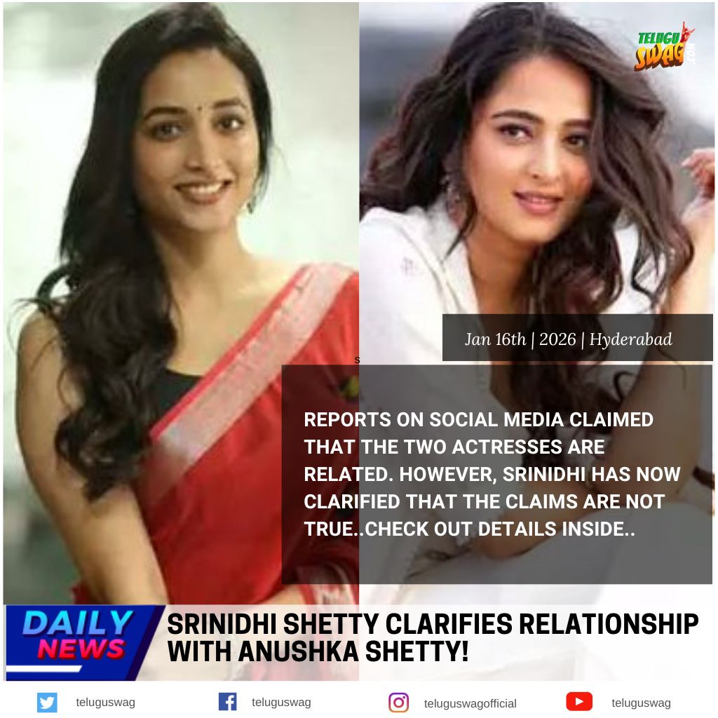 మరోవైపు, శ్రీనిధి శెట్టికి మరో స్టార్ హీరోయిన్ అనుష్క శెట్టి బంధువు అంటూ కొంత ప్రచారం జరుగుతోంది. దీనిపై శ్రీనిధి స్పందిస్తూ..తాము బంధువులం కాదని స్పష్టం చేశారు. కానీ ఎక్కడో ఒకచోట బంధువులం అయి ఉండొచ్చని అన్నారు. తాను ఇప్పటి వరకు అనుష్కను కలవలేదని చెప్పారు. అయితే, అనుష్క గురించి తాను చాలా విన్నానని..ఆమె చాలా డౌన్ టు ఎర్త్ అని, ఆమెకు హెల్పింగ్ నేచర్ ఎక్కువని, దయాగుణం ఉందని తెలిపారు. ఆమెను కలవాలనే కోరిక తనకు ఉందని చెప్పారు..!!